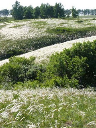 Весной степь поражает обилием красок. На смену буйному цветению степных кустарников - терна, вишни, спиреи, миндаля - приходит черед ветреницы лесной, горицвета весеннего, сон-травы. Нежные, словно фарфоровые колокольчики оносмы поникают среди начинающих колоситься метелок ковыля. Легкий ветерок колышет степное раздолье, наполненное ароматом трав, гудением шмелей, песнями птиц.