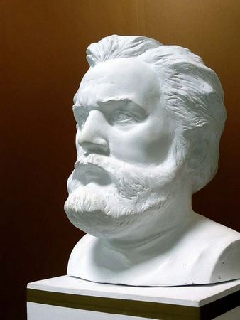 В музейном зале. Бюст В.Н. Хитрово – основателя заповедника
