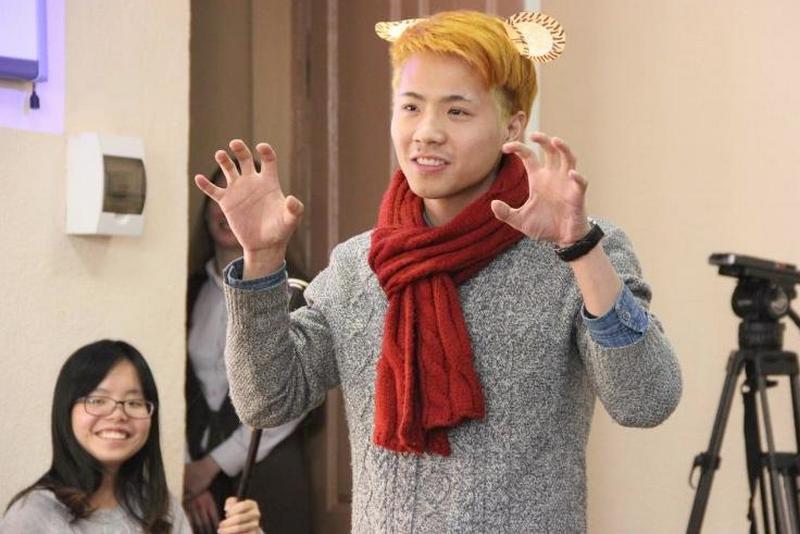 Foreign students presented an original direction of the folk tale Soft Round Bun. Traditional fairy tale characters - the old man and the old woman were dressed in Chinese folk costumes and instead of Hare, Wolf and Bear Kolobok (or soft round bun) met Monkey, Leopard and Panda. The famous Kolobok's song was performed in Chinese to the accompaniment of erhu.