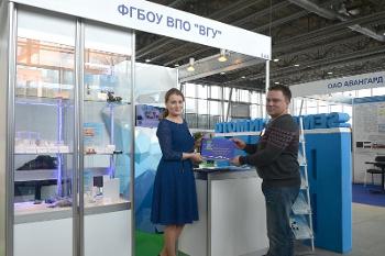 The participants and visitors to the exhibition were particularly interested in the following technologies invented and projects conducted by the University researchers: "Chitosan-based wound healing gel" by Pavel Fedosov, a postgraduate student, "Independent device for determination of the extent of blood loss" by Olga Dobrynina, senior research fellow, "Innovative material for moisture absorption and retention" by Professor Vladimir Selemenev, as well as "Magnesian Materials" project conducted by OOO Magnesian Materials Plant, and "Innovative petroleum sorbents" project conducted by OOO Greensorb Oil.