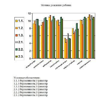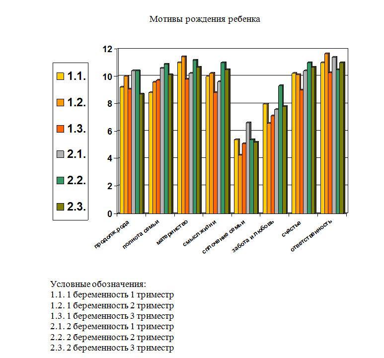 The most important problem is studying the motivation for reproduction. The connection was studied between the motives for childbirth and the woman's personality and relationships with the husband. The motivation for reproduction at the first and second childbirth was studied with the following results: women awaiting their first child want the child to be independent, while women giving birth for the second time are motivated by the family interests, care and happiness.