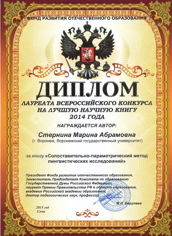 The book by Head of the Department of English Language for Sciences Faculties Marina Sternina 'Comparative Parameter Method of Linguistic Research' became a laureate of the national best scientific book competition 2014 in the nomination "Humanities".