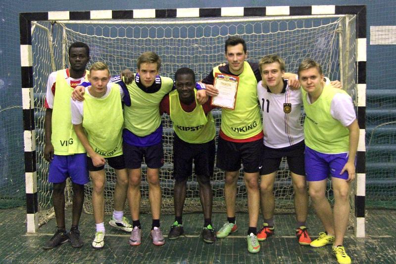 On October 5, an Indoor soccer tournament for first-year students was held at the gym of the Building № 6 of Voronezh State University. The competing teams represented eight faculties: the Faculty of Geography, Geoecology and Tourism, the Faculty of History, the Faculty of Computer Sciences, the Faculty of Mathematics, the Faculty of Romance and Germanic Philology, the Faculty of Applied Mathematics, Informatics and Mechanics, the Faculty of Economics, and the Faculty of Law.