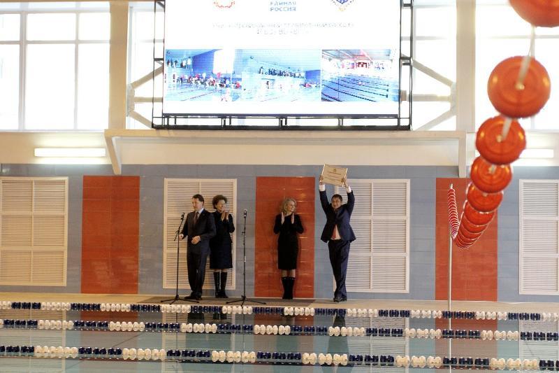 After the welcoming speech Yuriy Perin together with Aleksey Gordeev started the first University swimming race which marked the official opening of the new sporting venue.