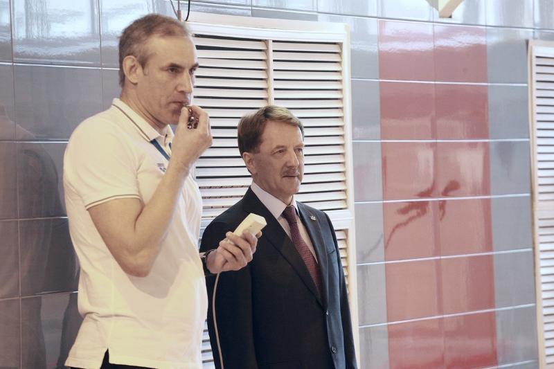 The Governor of the Voronezh Region Aleksey Gordeev congratulated the guests on the grand opening of the swimming pool and noted the concerted efforts made by the government authorities and the University during the pool's construction. In addition, on behalf of the Government of the Voronezh Region Aleksey Gordeev presented the Rector of Voronezh State University with a certificate for 500 000 roubles to buy extra sport equipment for the gym hall in the VSU swimming pool complex.