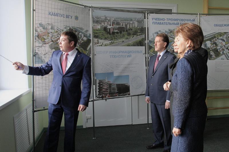 The University guests also looked round the gym hall of the VSU swimming complex. Dmitriy Endovitskyy presented the project of the northern VSU campus to the guests. It includes a new University dormitory, the swimming pool and an educational laboratory facility "VSU Information Technologies Centre" which is planned to be built here.