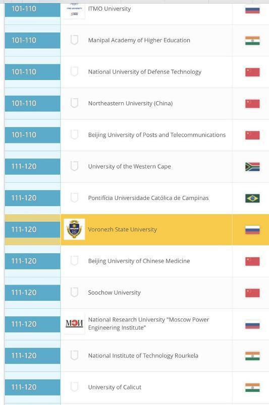 This year, Voronezh State University became number 111 in the ranking of the top universities of the BRICS countries and number 22 among the other Russian universities, improving its position compared to last year (by 2 positions in the Russian Federation and by 5 positions among BRICS countries).
