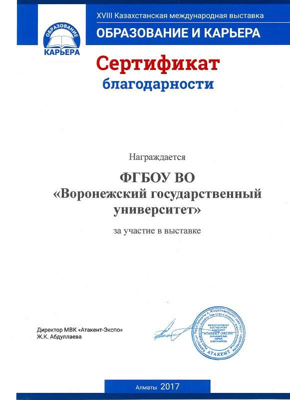'It should be mentioned that we were one of the last leading Russian universities to join this educational framework. We underestimated the potential of Kazakhstan, and Russian-speaking Almaty in particular, as a source of future students. At the exhibition VSU attracted a lot of interest. We noted that our couterparts organized offsite admission boards in Almaty. It is very convenient both for prospective students and their parents as it considerably reduces the risks connected with failure to enter university. In the nearest future, we plan to examine this option in detail to further increase interest in our university.
