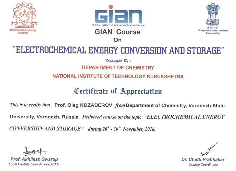 In 2015, Voronezh State University, as one of the best universities in Russia, was invited to participate in the programme by the Embassy of India in the Russian Federation. The application submitted by Oleg Kozaderov underwent a strict multi-stage selection by the experts of the GIAN council. Within the three years that the programme has been operating, only 20 applications by Russian researchers have been approved.