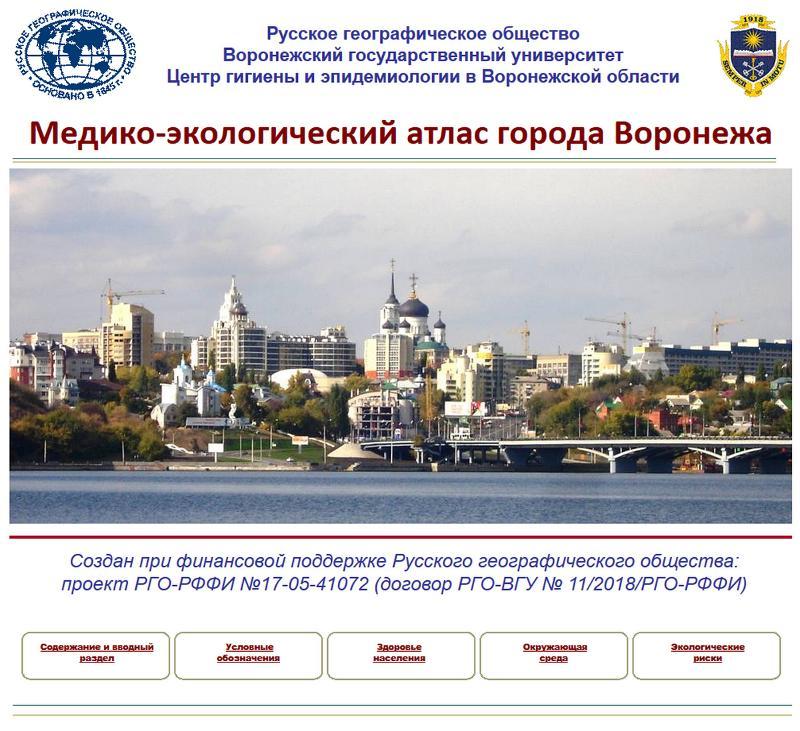 Researchers from the Faculty of Geography, Geoecology, and Tourism have created a medical and environmental atlas of Voronezh. The atlas is a part of the research project “Geoinformation support of medico-ecological monitoring of large industrial centres” supported by the Russian Geographical Society and the Russian Foundation for Basic Research. It was developed using geoinformation mapping technology.