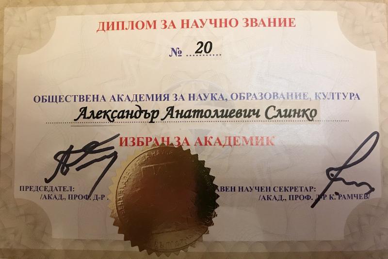 Alexander Slinko, the Head of the Department of International Relations and World Politics of Voronezh State University was elected a member of the Public Academy of Science, Education, and Culture of Bulgaria.