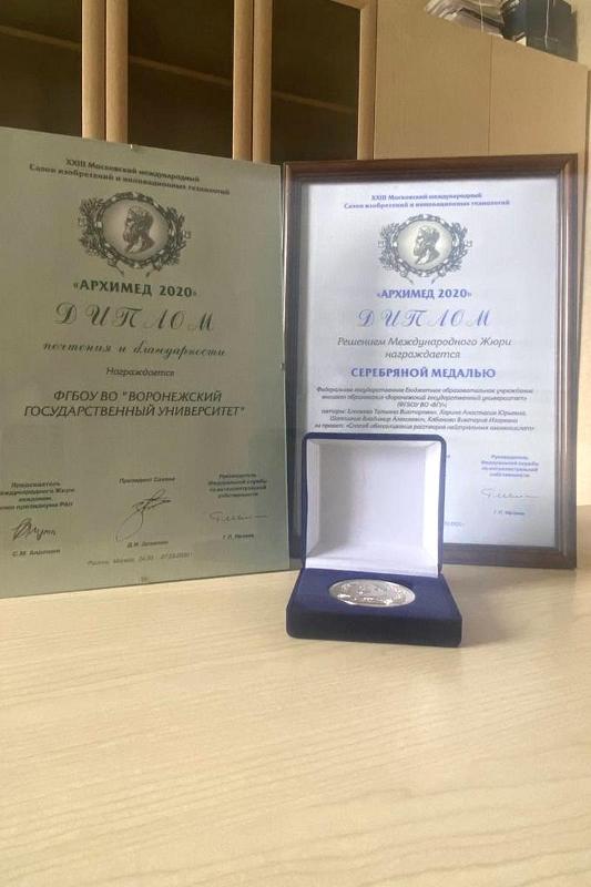The results of the Moscow International Inventions and Innovative Technology Salon "Archimedes–2020” have been concluded. The event consisted of a number of varied events: a fair of inventions, conferences, venture fairs, contests, and presentations of national projects and technologies. Staff members of the Faculty of Chemistry of VSU, Tatiana Yeliseyeva, Anastasia Kharina, Vladimir Shaposhnik, and Victoria Kabanova, were awarded with a silver medal in the section “Inventions and innovative technologies”. The researchers proposed to use a new innovative approach to purify amino acid solutions by means of electrodialysis.