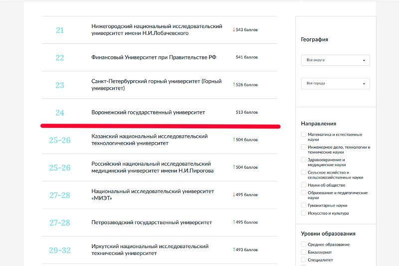 The Interfax Information Agency published the National University Rating. Voronezh State University ranked 24th among 337 Russian universities.