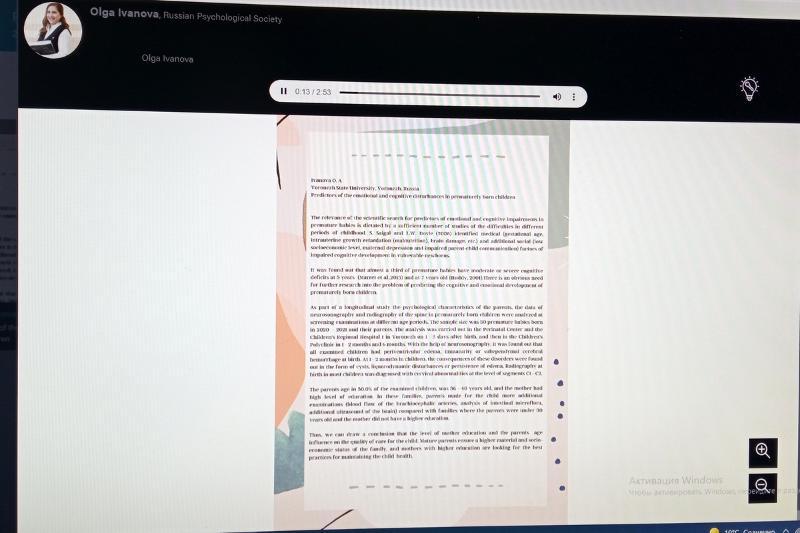 Olga Ivanova underwent a strict multi-stage selection and was among 300 people who presented their poster presentations on the website of the event. The lecturer recorded an audio message “Predictors of Emotional and Cognitive Disturbances in Prematurely Born Children”.