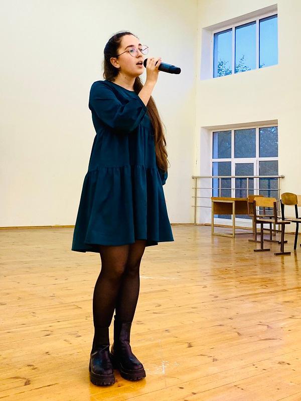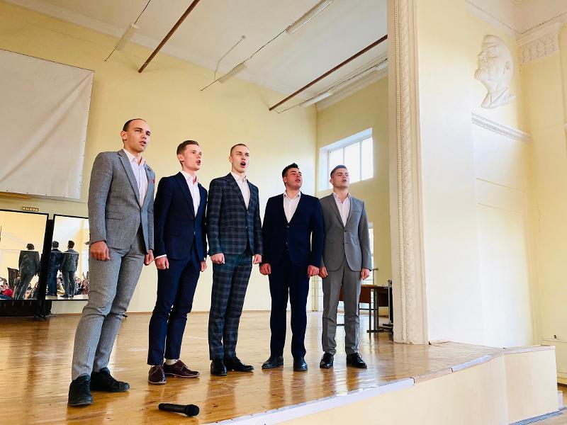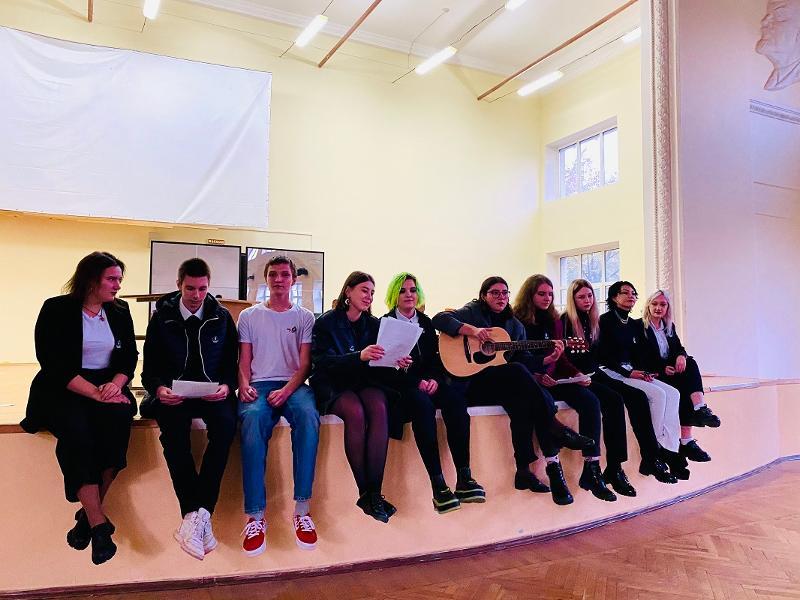 Within the informal part, first year students showed their creativity and presented sketches and sang songs. Dmitry Kurilov, a graduate of the English department, who now works at the Department of Foreign Literature at the Faculty of Philology, also sang a song based on a sonnet by Shakespeare. The song consisted of the original sonnet and the translation by Dmitry Kurilov.
