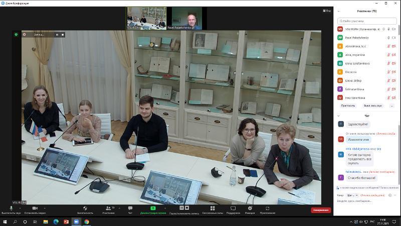 Also, the translation platform included a number of interesting meetings and workshops dedicated to: technological and ergonomic aspects of remote interpreting (Andrey Kalinin, PhD, senior lecturer at Moscow State University); translation quality assessment (Elena Knyazheva, PhD in Philology, Associate Professor at VSU); translation project development as part of teaching translating (Tatiana Yudina, PhD in Philology, Associate Professor at Herzen State Pedagogical University of Russia, Saint Petersburg, and Natalia Sigaryeva, PhD in Philology, Associate Professor at Herzen State Pedagogical University of Russia, Saint Petersburg), practice of and teaching technical translation (Israil Shalyt, technical translator, Director of the translation agency Intent, Moscow). Students and lecturers from the Faculty of Romance and Germanic Philology took an active part in the workshop dedicated to preparation of the interpreter for interpreting at a conference. The workshop was held by Pavel Palazhenko, Head of the press office of the Gorbachev Foundation.