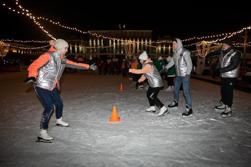 Daria Berdnikova, a first-year student of the college of Voronezh State Sports Academy and winner of the regional figure skating competitions, gave a performance, and the Ekoniva-Bobrov hockey team held a workshop for the students. Ice relay races among university teams began right after that. Nine teams were divided into groups of three by drawing lots and identified the strongest participant in each team. During the relay races, students had to zigzag between the cones while staying ahead of their competitors, reach their teams using figure skating elements called “flashlight” and “swallow”, and lead the puck on the ice for 20 metres without losing it. The dancing competition was the last part of the event. All teams joined into a big circle and skated on the ice.