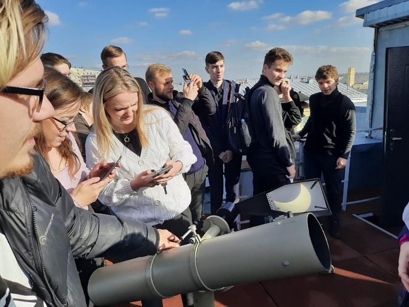 On 25 October, VSU students and staff watched the solar eclipse at the VSU observatory. The event was organised by the staff of the Department of Optics and Spectroscopy of the Faculty of Physics of VSU.