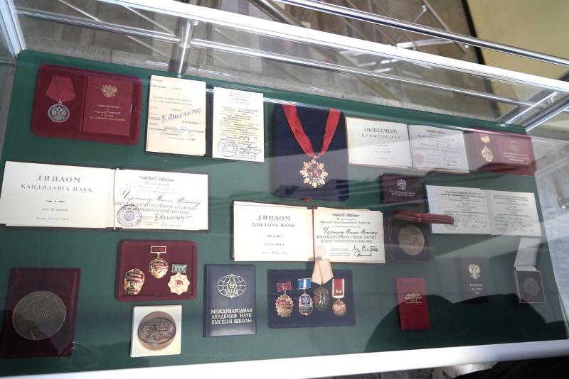 On 3 November, the exhibition “Talent multiplied by hard work” opened in the second floor hall of the main building of VSU. The exhibition was dedicated to the 90th anniversary of Nikolay Chernyshov, professor of the Faculty of Geology of VSU. Nikolay Chernyshov, DSc in Geology and Mineralogy, was an Associate Member of the Russian Academy of Sciences, Head of the Department of Mineralogy, Petrology, and Geochemistry, and Honoured Scientist of the Russian Federation. The scientist discovered nationally important nickel deposits in the Voronezh Region. His opinion was always authoritative for the university community, he chaired the Council of Elders of the university.