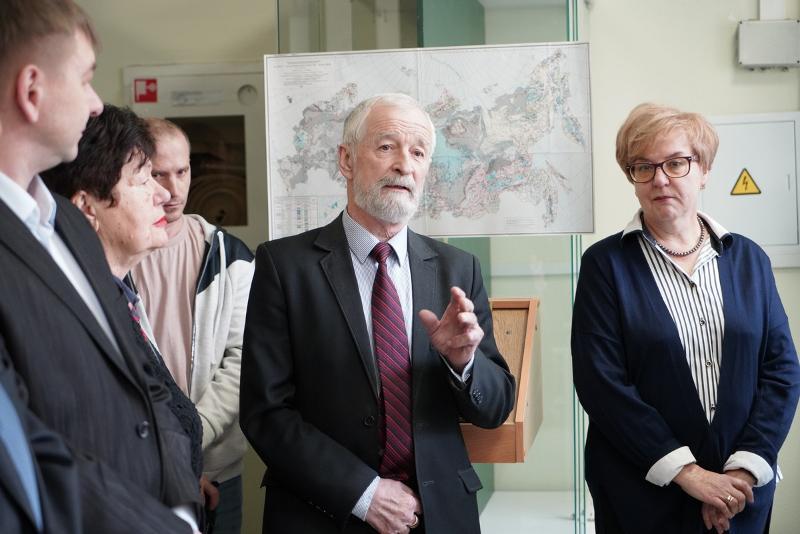 The exhibition was opened by Oleg Kozaderov, Vice-Rector for Research, Innovations, and Digitising at Voronezh State University and Head of the Department of Physical Chemistry. Colleagues and students of Nikolai Chernyshov spoke about the personality of the researcher and teacher, as well as the fact that his work at the Faculty of Geology is continued by his students. Marina Chernyshova, Professor at the Department of Mineralogy, Petrology, and Geochemistry, emphasised that Chernyshov’s private collection of scientific books was handed over to his “home” department: now students can use its unique items Also, opening speeches were made by Professor Viktor Nenakhov, Dean of the Faculty of Geology at VSU; Professor Alexander Plaksenko, Chair of the Voronezh Regional Branch of ROSGEO, full member of the Academy of Mining Sciences, Alexander Albekov, Head of the Department of Mineralogy, Petrology, and Geochemistry at VSU, Chair of the Voronezh Branch of the Russian Mineralogical Society, and Evelina Domashevskaya, Consulting Professor at the Department of Solid State Physics and Nanostructures and Chief Researcher of the department.