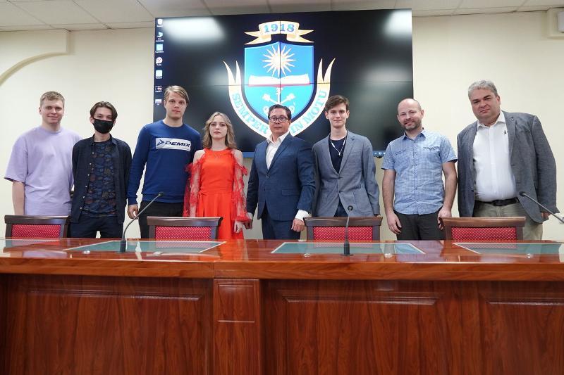 On 1 June, in the conference hall of VSU, Dmitry Endovitsky, Rector of the university, met with students of the Faculty of Computer Sciences, two-time second-place winners of the International Sports Programming Festival “Peace Code”. The head of the university noted the outstanding achievements of young experts who honourably represented the region at the large-scale professional competition.