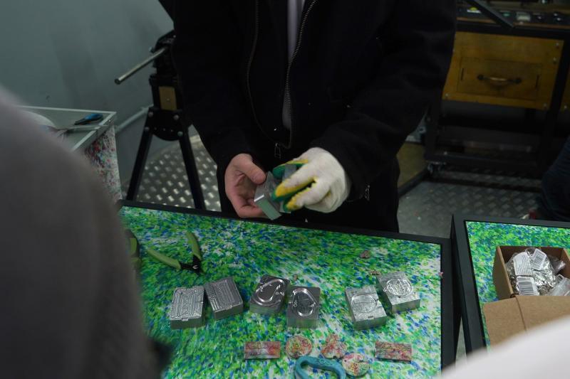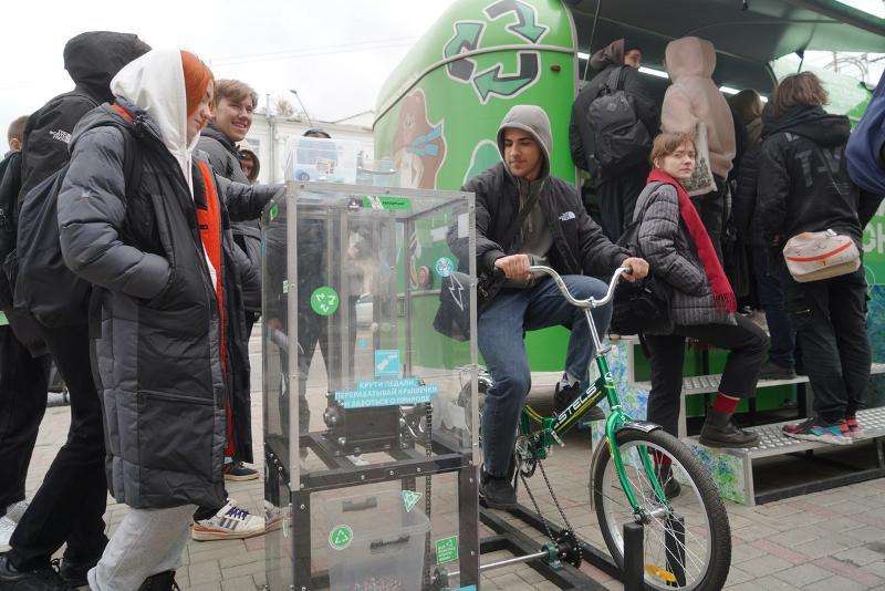 A bicycle shredder was placed near the van. Everyone could personally participate in the recycling process: grind caps into crumbs, which could be melted down to obtain various items, for example, medals or key rings. Also, as part of the event, the participants of the action were shown a film dedicated to the process of recycling recyclable materials in Russia.