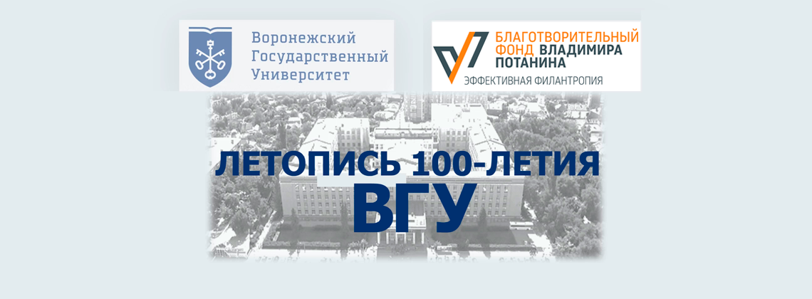 В честь векового юбилея Воронежского Государственного Университета на телеканале КТВ «Воронеж» запущен цикл передач "Летопись 100-летия ВГУ". Программа создается при поддержке Благотворительного фонда Владимира Потанина.