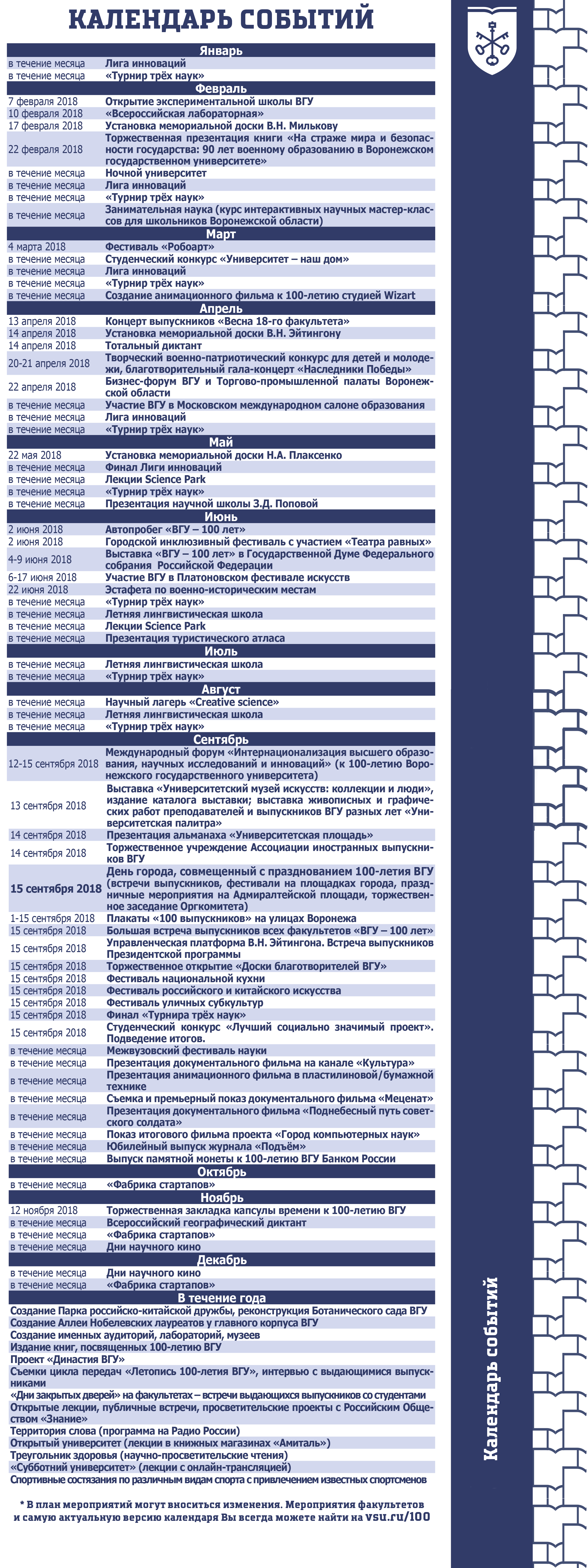 По итогам первого заседания оргкомитета, состоявшего- ся 7 июля 2017 года в Минобрнауки России, указом губернатора сформирована рабочая группа по подготовке и организации празднования 100-летия. На основании предложений членов рабочей группы скорректирован и утвержден план-график мероприятий.