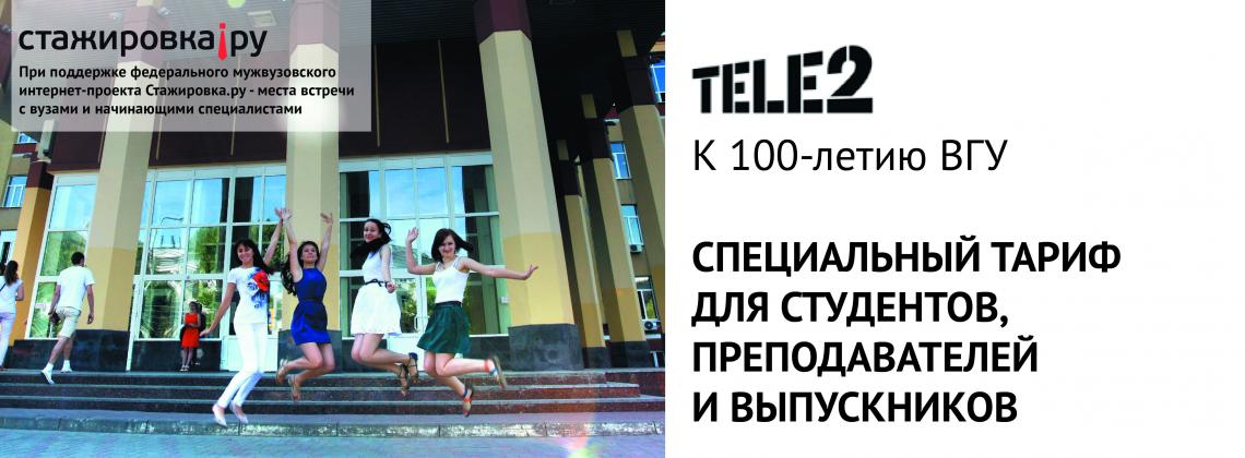 Партнер Университета – альтернативный оператор мобильной связи Tele2 - подготовил по-настоящему эксклюзивный тариф для всех, кто связан с ВГУ: наших студентов, преподавателей и выпускников. Вы можете ознакомиться с параметрами тарифных планов по ссылке, сравнить их с Вашими текущими расходами на связь и убедиться, что это одно из лучших предложений на рынке.