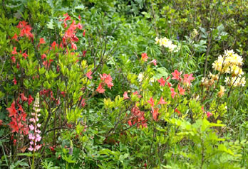 Una de las plantas más bonitas son las de la famlia de las ericáceas. Hay especies que alumbran su belleza en la temporada de primavera-verano, mientras que las plantas de hoja perenne lo hacen durante todo el año. Son de varios colores, pero las más comunes son blancas y lilas. (Rhododendron adamsii, Rhododendron dauricum, Rhododéndron pónticum). Algunas son blancas (Rhododéndron caucásicum, Rhododendron ungernii, Rhododendron tschonoskii), mientras que el Rhododendron luteum y el Rhododéndron auréum tienen flores amarillas. Las especies Bruckenthalia, Pieris, Zenobia, Ledum, Lyonia and Eria se han introducido por primera vez.