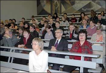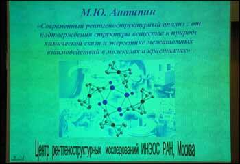 Для преподавателей, сотрудников и студентов ВГУ состоялась лекция руководителя Центра рентгеноструктурных исследований РАН (Москва), члена-корреспондента РАН М.Ю.Антипина на тему "Современный рентгеноструктурный анализ - от подтверждения строения вещества к природе химической связи и энергетике межатомных взаимодействий в молекулах и кристаллах".