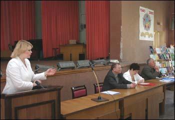 Перед собравшимися выступили: начальник отдела профессионального образования ГУО Воронежской области Зайцев А.М., начальник отдела аттестации и аккредитации ГУО Воронежской области Мовшина М.С., проректор ВГУ по учебной работе Ищенко Е.Н..