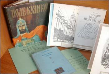Несомненный интерес представляют книги воронежских писателей-краеведов: О.Кретовой, В. Будакова, З. Анчиполовского. На выставке можно увидеть книги, подаренные учеными Воронежского университета: В. Загоровским, О. Ласунским,А. Абрамовым.
