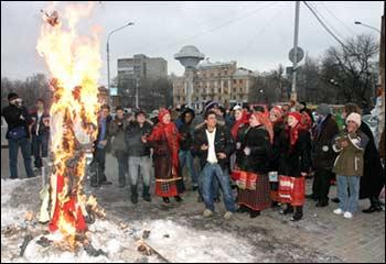 Завершился праздник традиционным сожжением чучела Масленицы.