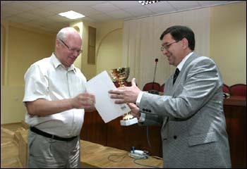 Cостоялось заседание Ученого совета ВГУ. По традиции перед началом обсуждения рабочих вопросов ректор В.Т. Титов вручил награды. В этот раз «героями дня» были деканы факультетов физического А.М. Воробьев, юридического В.А. Панюшкин и экономического В.П. Бочаров. Они награждены кубками и медалями за успехи в развитии физической культуры и спорта.