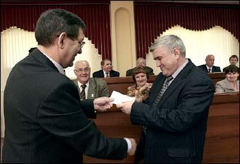 В начале его работы ректор ВГУ В.Т. Титов вручил почетный знак «За заслуги перед Воронежским государственным университетом» профессору И.К. Маршакову, отметившему свое 80-летие, и диплом о присвоении ученого звания профессора декану исторического факультета В.Н. Глазьеву.