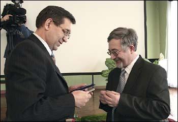 В ходе официальной части ректор Воронежского государственного университета В.Т. Титов вручил юбиляру почетный знак «За заслуги перед Воронежским государственным университетом».