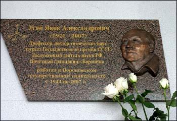 19 сентября 2008 года в рамках празднования 90-летия ВГУ состоялось торжественное открытие мемориальной доски почётному гражданину г. Воронежа, профессору ВГУ Якову Александровичу Угаю.