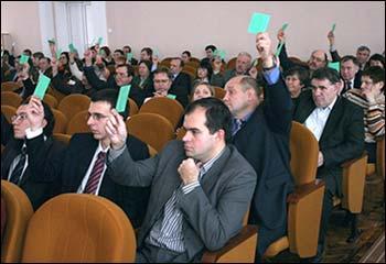Делегаты открытым голосованием выбрали комиссию по трудовым спорам (Задорожний В.Г., Сарычев А.Г., Сенных Л.Н.) и тайно проголосовали за новый состав ученого совета университета.