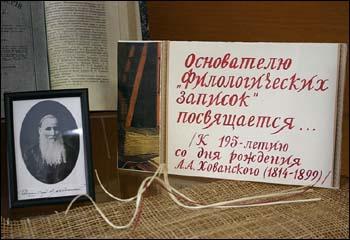 В Музее книги Зональной научной библиотеки ВГУ открылась выставка, посвященная основателю старейшего научно-педагогического журнала «Филологические записки» А.А. Хованскому и приуроченная к 195-летию со дня его рождения.