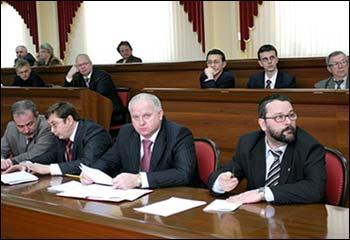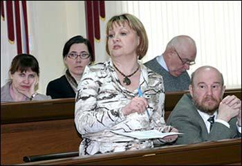 В обсуждении приняли участие декан исторического факультета В.Н. Глазьев, заведующая кафедрой русского языка филологического факультета Л.М. Кольцова, начальник управления основных образовательных программ В.М. Коровин, заведующая кафедрой физики твердого тела и наноструктур Э.П. Домашевская, ректор В.Т. Титов.
