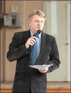 Затем заведующий кафедрой теории перевода и межкультурной коммуникации профессор Вячеслав Кашкин прочитал поздравительное письмо от президента Союза переводчиков России Леонида Гуревича.