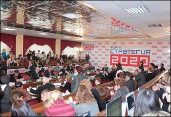 В главном учебном корпусе ВГУ состоялся воронежский этап форума «Стратегия 2020», организованного по инициативе политической партии «Единая Россия». Его целью стало обсуждение концепции социально-экономического развития страны, которую озвучил Владимир Путин на заседании Госсовета в феврале 2008 г.