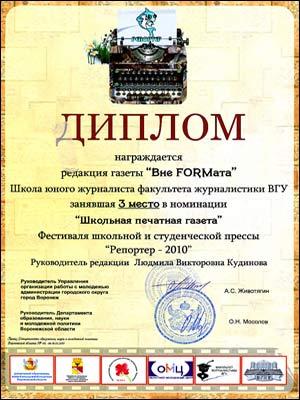 Ребята из Школы юного журналиста ВГУ уже второй год подряд принимали участие в конкурсе и каждый раз не уходили без наград. В этом году жюри присудило им 3-е место в номинации «Школьная печатная газета» среди городских изданий. Кроме того, более 15 учащихся Школы юного журналиста ВГУ заняли 1-е, 2-е и 3-е места в отдельных номинациях, собрав большой урожай грамот, подарков и аплодисментов.