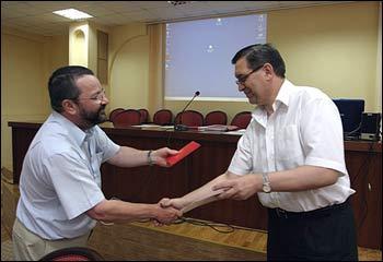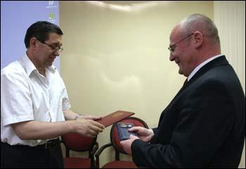 Ректор ВГУ, профессор В.Т. Титов тепло поздравил Ф. Ресснера с почетным званием и вручил ему диплом и знак «За заслуги перед ВГУ».