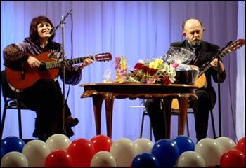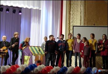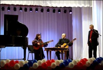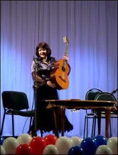 Свой вклад в концерт сделали и дети из лагеря «Защитник», которые недаром так тянутся к этой лучезарной женщине: она учила их играть гитаре, прививала любовь к авторской песне: «Летом в лагере каждый вечер кто-то шёл развлечься на дискотеку, а мы, такие упрямые, сидели в библиотеке. И сегодня мы даже привезли с собой специальную атрибутику – костёр, палатку. Всё это сохранило запах дыма, мы перед концертом нюхали», – смеётся, обращаясь к залу и к ребятам, бард. – Сегодня мы исполним вам две песни, которые очень любим: это классика жанра «Семеро у костра» и «Бумажный солдатик». И музыка полилась…