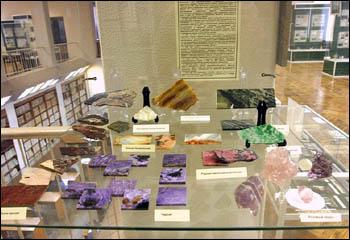 На выставке минералов из личных коллекций В.Г. Гадиятова, В.А. Ежова, Ю.Б. Комиссарова представлены различные минералы из разных регионов России (Дальний Восток, Якутия, Карелия, Урал), Казахстана, Таджикистана, Туркмении, с о-ва Мадагаскар, а также изделия из них.