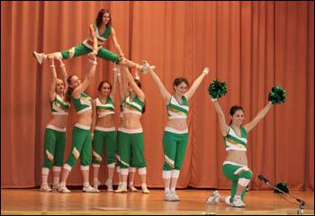 Вручение открыло выступление группы поддержки «А-стэм». Девушки с факультета РГФ показали на сцене чудеса гибкости и ловкости.