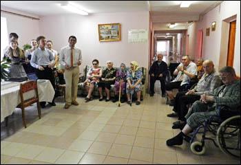 Студенты филологического факультета ВГУ с небольшим концертом посетили Воронежский областной дом-интернат милосердия для престарелых и инвалидов, находящийся недалеко от санатория им. Горького.