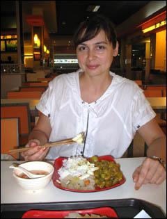 Поесть основательно – не проблема, маленьких ресторанчиков вдоль улиц очень много. Блюда в них разнообразны и недороги, а хозяева приветливы и радушны. Южная кухня славится своими острыми блюдами. Но привыкнуть к ней мне так и не удалось. Ели и пробовали почти всё, но, наученные опытом, спрашивали: «Ладио ёу?» («Есть перец?»). Самое известное блюдо – «чунцинский самовар»: мясо, овощи, грибы, лапша, сваренные в своеобразной глубокой миске – «самоваре». На каждом шагу море фруктов. Особенно вкусны ананасы (четвертинки на палочках), клубника, арбузы, мандарины, виноград, персики, груши, «ян мэй»...